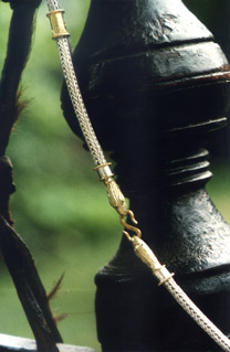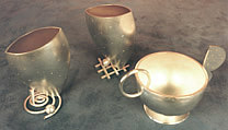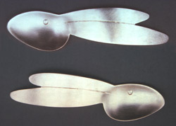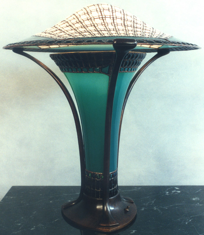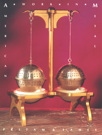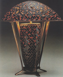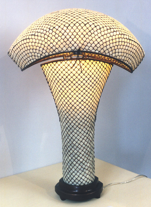 The Hilliards sent two lamps for the anniversary show; Janene's Ivory Reed Lamp was extremely well received, and stands close in accomplishment to Noel Hilliard's earlier (see 1997) Queen of the Nile lamp. The Ivory Reed Lamp sold twice in the opening week after Janene agreed to repeat the lamp. Noel Hilliard's Tapaintana Lamp was also well received. These Hilliards lamps are considerable craft objects; the individual bronze fabrication as well as the construction time for the lamps makes them craft objects of the highest order.