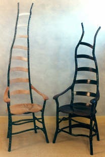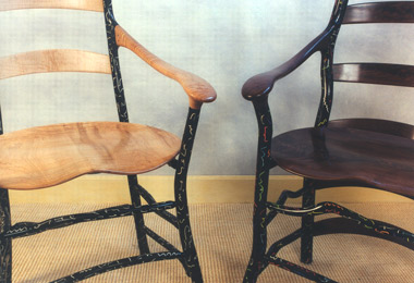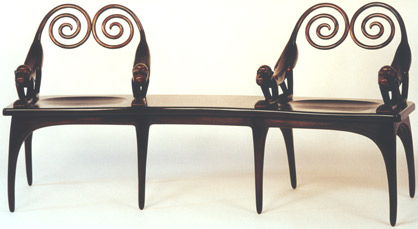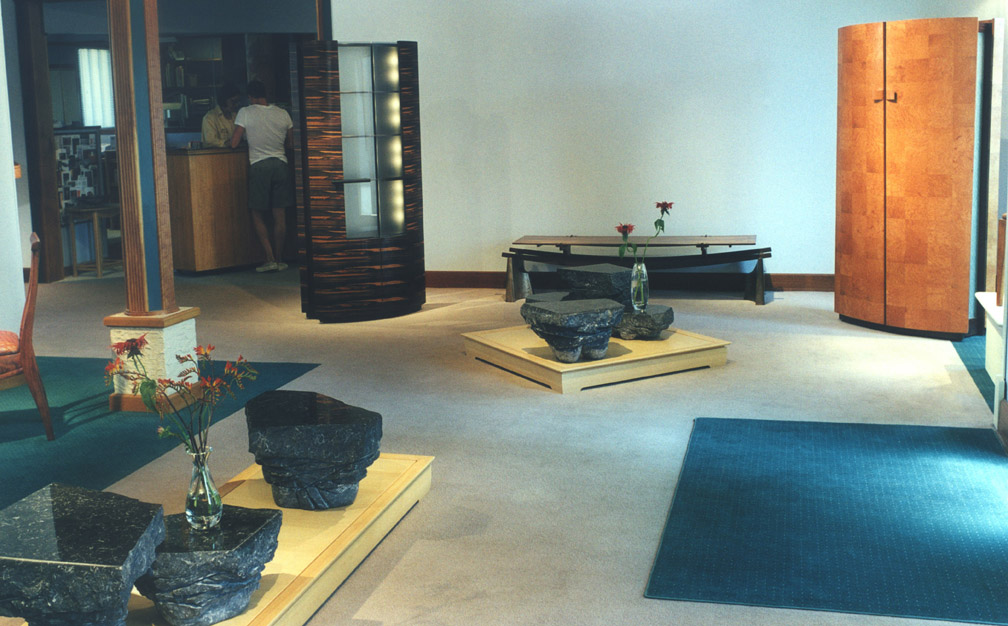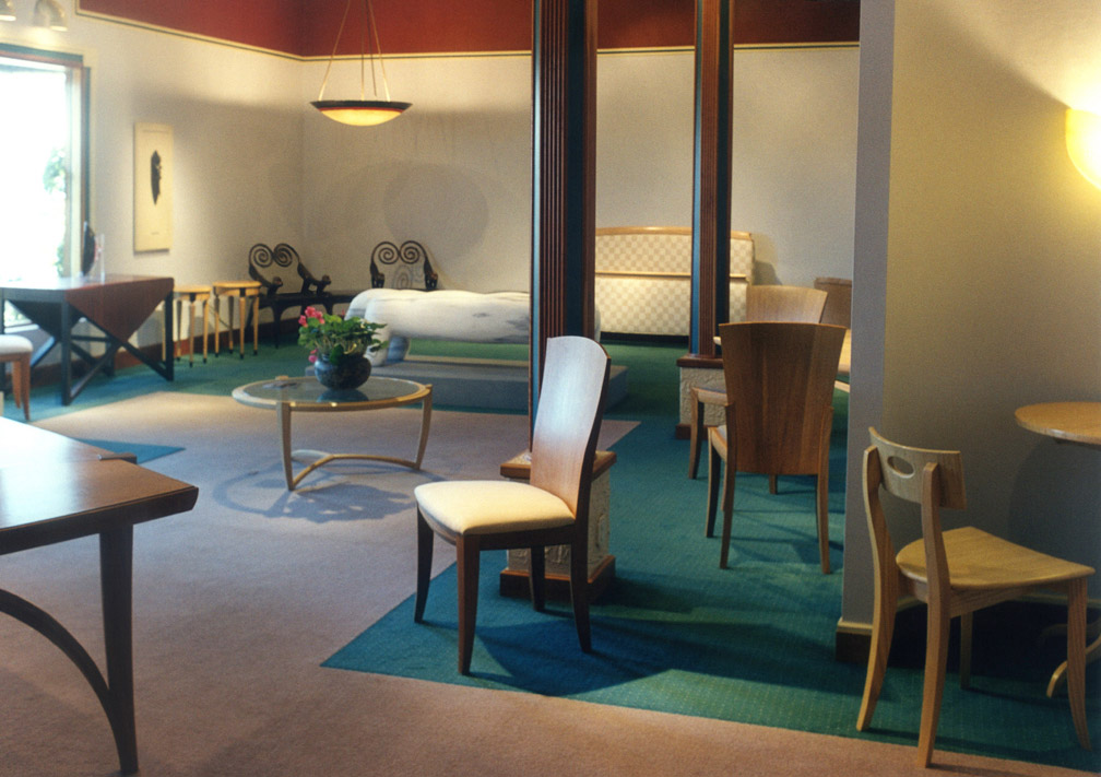 It is difficult for the partners to talk about the 1990s without talking about Peter Joseph, their client of nearly ten years. In November 1989, at the Quilted Giraffe Restaurant in New York City, Joseph proposed that the partners join him to create a New York gallery. Initially, the three discussed a partnership, but it became clear that their views for the direction of this gallery were divergent. The partners stepped aside, and Peter Joseph opened his Fifth Avenue gallery in New York in 1991. Many eyes were trained on this event. For those on the roster, as well as for those who wanted to be, this gallery venture seemed like a long-awaited validation of their artistic worth. In an important sense, the next moment in studio furniture’s dialectic was played out within the white walls, hardwood floors, and fine arts setting of this urban gallery. There, the work of some makers looked at ease, while others seemed out of place.