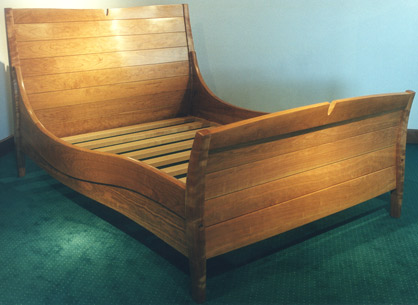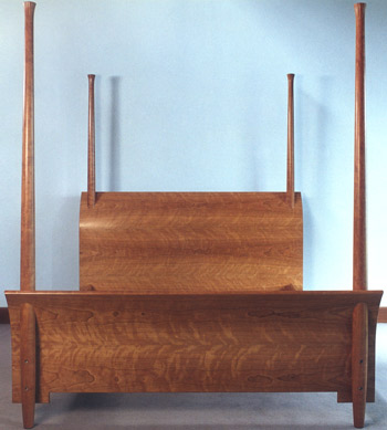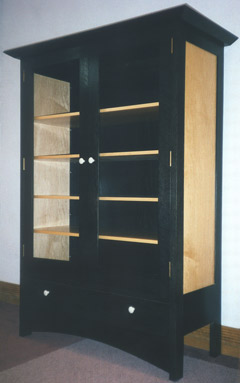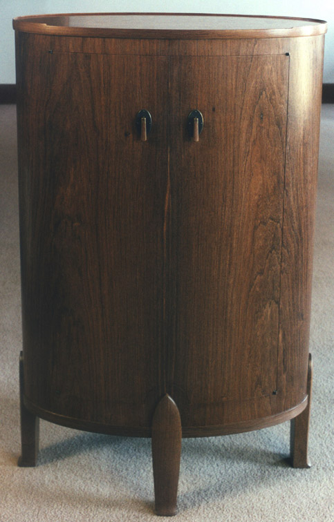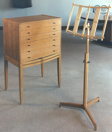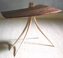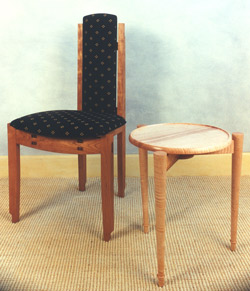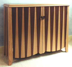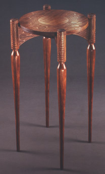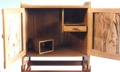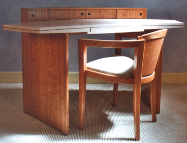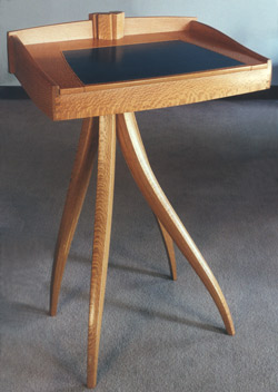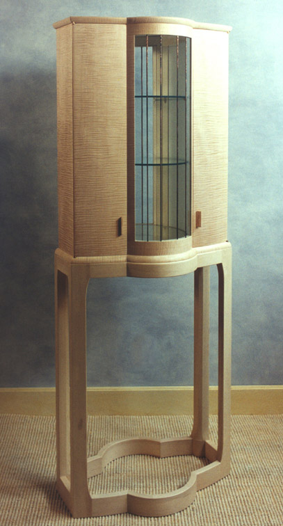 Absent, though, to any considerable extent in this Walker work is an obvious reference to his mentor, James Krenov. In fact, the curved and aerodynamic quality of his side table and his solid fan-backed dining chair seems more in line with the thinking of the Finnish-born architect/designer, Eero Saarinen, or even Jere Osgood. Still, Walker's maple Silver Cabinet does reflect Krenov's attention to material as a major source of inspiration.