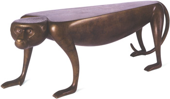 McKie will occasionally make wood pieces in small editions such as the Baby Elephant Table, which was an edition of five. Past small wood editions have included the Bird Table (1982) and the Snake Table (1987). There is a freedom that seems to come with this scale of piece for McKie, and the Baby Elephant Table was a piece cherished by gallery visitors. The utter simplicity of its form captures the contentment of simply being where it is -- truly a benign quality. The elephant stands with its legs pouring downward into the ground. What is fascinating is McKie’s ability to express and create dramatic differences through simple form. We also see this in the Jaguar Table, a similarly rooted vertical form, but one that expresses an intense energy and strength of movement.