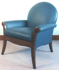 The Jere Osgood easy chair in walnut and black leather is the latest version of this edition. The strength in the chair designs of William Walker, John Dunnigan,Timothy Philbrick and James Schriber work has been noted. The latter two makers were trained by Osgood. In an Osgood show, the desks and carcass pieces tend to be dominant, but this easy chair will arguably prove to be one of the classics from the studio furniture movement.