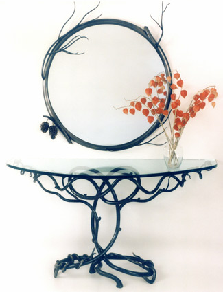 Fran Taubman - Forged Steel, Bronze, Glass Vine Mirror and Vine Console