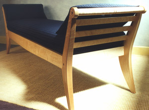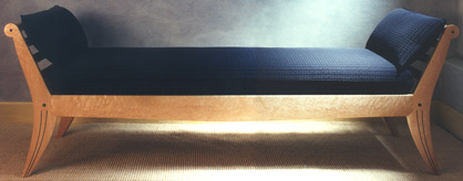 Tim Philbrick - Curly Maple, upholstery Grecian Couch