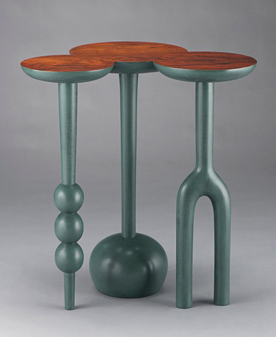 | Wine Table (rear) by DAVID EBNER Walnut with pigmented bronze finish. 20”H x 22”diameter |