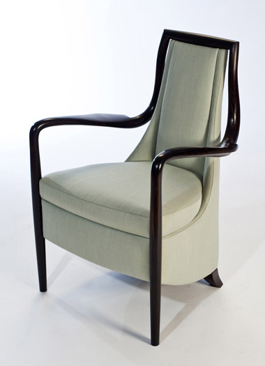 Work for his show at Pritam & Eames included a settee, a sideboard or foyer table, a pair of ebony upholstered chairs, and a low table. Some of his presentation drawings for furniture pieces were also included in the show. |