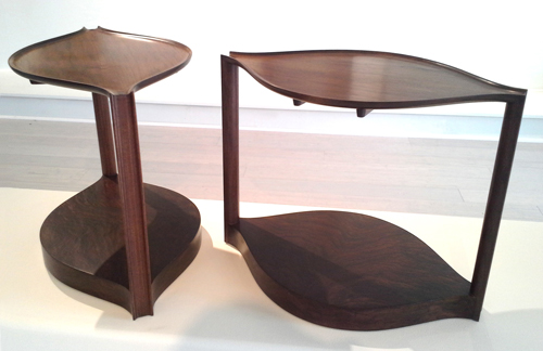 | Shaped Side Tables by THOMAS HUCKER African padauk. 20.75"H x 26"W x 16"D |