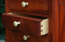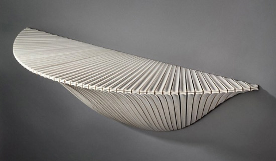 About Hucker, Makepeace says: “I have long admired Tom Hucker's furniture -- his approach contrasts with mine in his choice of exotic timbers, but he achieves extraordinarily poetic forms with an economy that is delightful.” Hucker states: “When I was young, John Makepeace was this mythical figure, this sublime master craftsman and design innovator on the other side of the Atlantic. His work is very ‘full’ to me, by which I mean the craftsmanship is exceptional, the underlying concepts are focused and firm, the designs are carefully articulated, and the details are high notes floating above these structures. Makepeace’s work always makes me smile -- it’s the ‘Damn, he’s good’ smile.” |