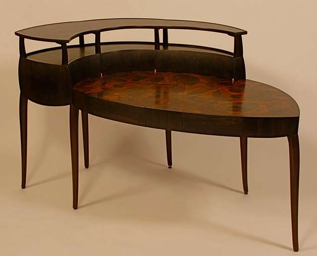 | Swing Leg Table Bubinga, ebony, gesso. 29”H x 30”W x 13.75”D; extended: 29H" x 48.5”W x 30”D |